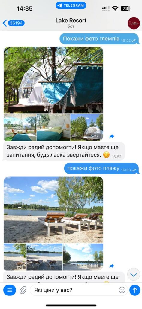 - Надає миттєві відповіді – оперативно відповідає на запити про послуги, умови бронювання та правила комплексу.